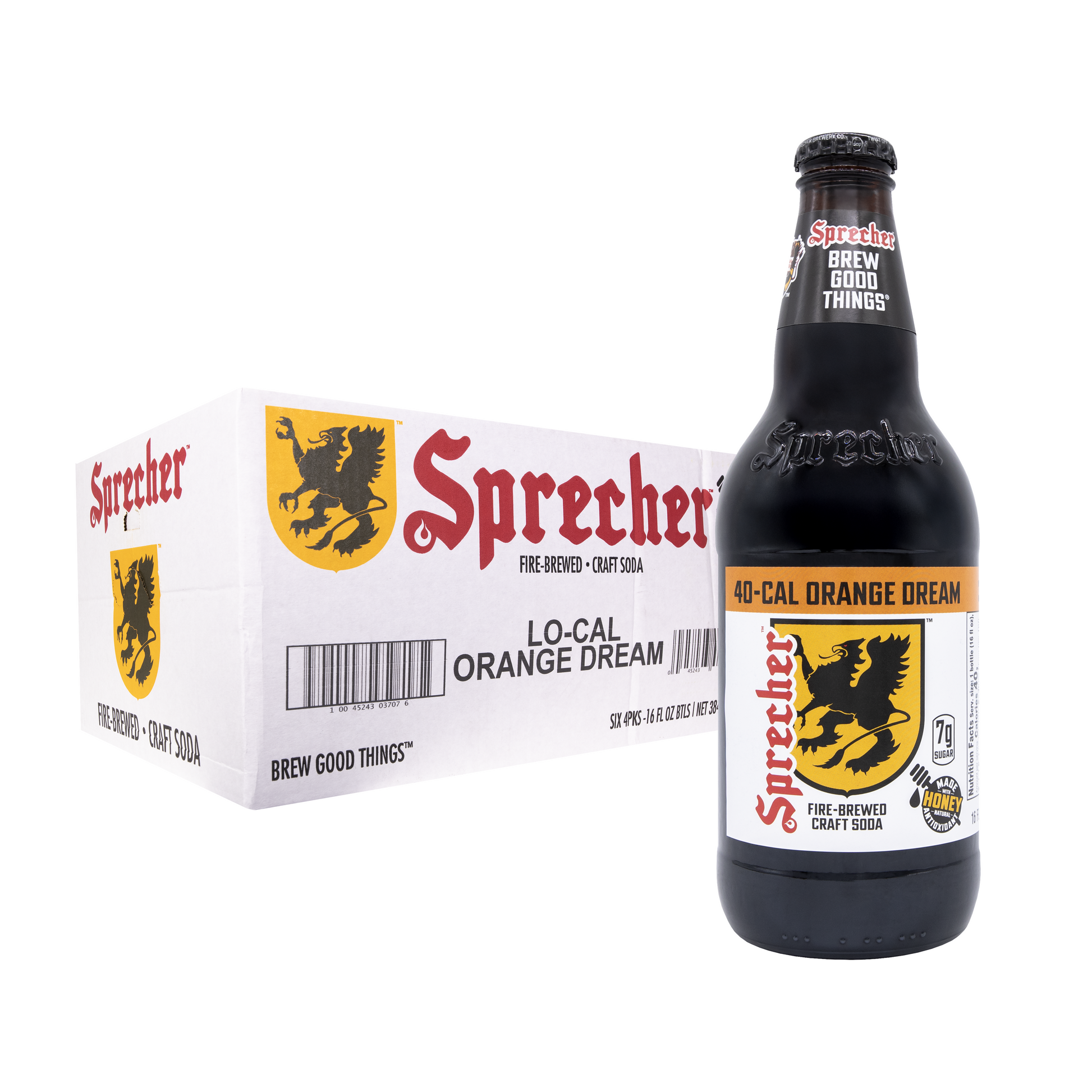 Sprecher Low-Cal Orange Dream Soda delivers a creamy, citrus-vanilla flavor you love with just 40 calories per serving. Handcrafted in Milwaukee, it’s fire-brewed with raw Wisconsin honey, natural and artificial orange and vanilla flavorings, and sweetened using a low-calorie formula for a lighter version of our classic Orange Dream. Certified Kosher, gluten-free, and caffeine-free, this soda gives you indulgent taste in a mindful, reduced-calorie format.
